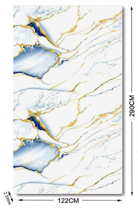 Pannello PVC Rigido Effetto Marmo 122×290 cm Spessore 2,5 mm Blu e Oro