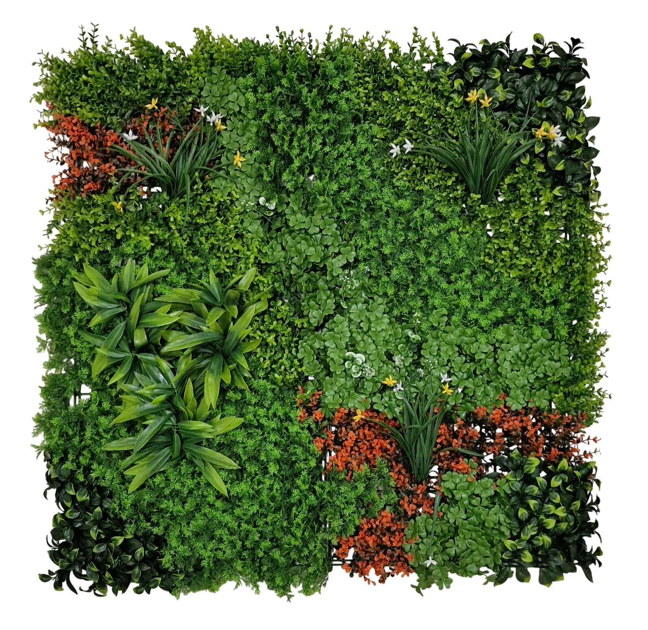 Siepe decorativa con foglie tipo lauro in poliestere fissate su supporto in PVC. Ideali per proteggere la privacy e l’intimità della casa, terrazzo e giardino. Colore verde scuro.